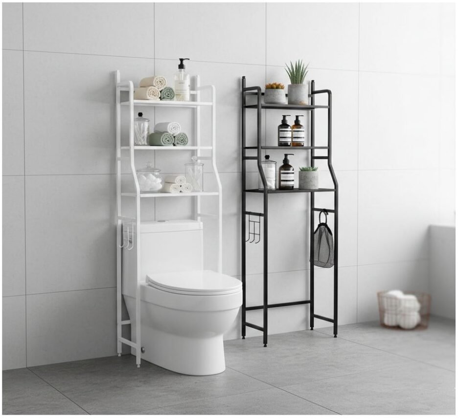 منظم عملي يوضع فوق المرحاض مصمم لاستغلال المساحة العمودية في الحمام بشكل ذكي